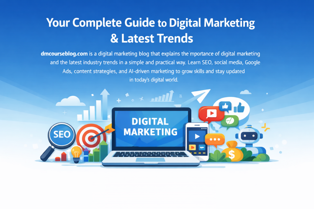 dmcourseblog.com is a digital marketing blog that explains the importance of digital marketing and the latest industry trends in a clear and simple way. As businesses and careers move online, skills like SEO, social media marketing, Google Ads, content marketing, and AI-driven strategies have become essential. This blog is created for beginners, students, job seekers, and business owners who want practical knowledge, easy explanations, and up-to-date insights. Explore the latest blogs to learn digital marketing concepts and stay updated with current trends.